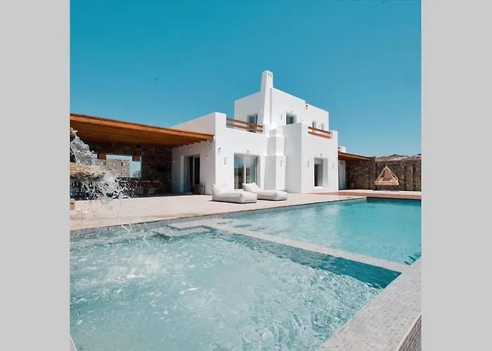 Questa villa con 6 camere da letto si trova a 15 minuti di auto dall'aeroporto di Mykonos e a 2,1 km dalla Spiaggia di Kalo Livadi.